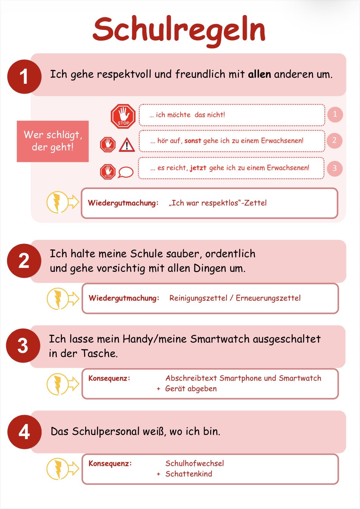Unser Schulleben kann nur gut funktionieren, wenn wir uns alle an diese Regeln halten.